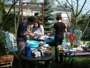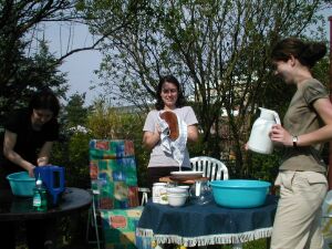 Und hier ist noch ein anderes Beweisphoto, dass angehende Medizinerinnen auch abwaschen können. Evi hat natürlich auch abgewaschen und nicht nur in der Hängematte gelegen. Nur habe ich von dem Abwaschen leider kein Photo. |