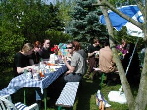 Zum Gedenken an den Internationalen Kampf- und Feiertag wollten wir ein Frühstück veranstalten. Da aber nicht alle diese heroische Haltung wie Gino hatten, haben wir es zu einem Maifrühstück umbenannt und so war es dann auch sehr schön.